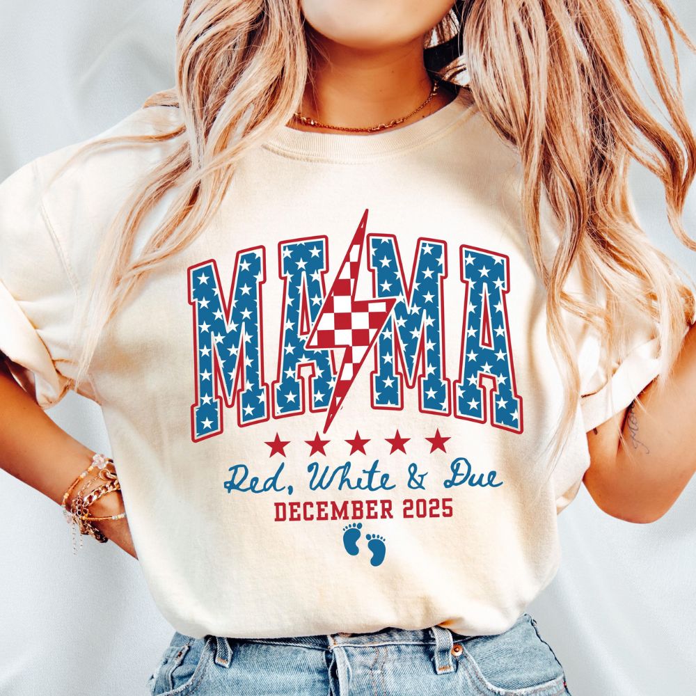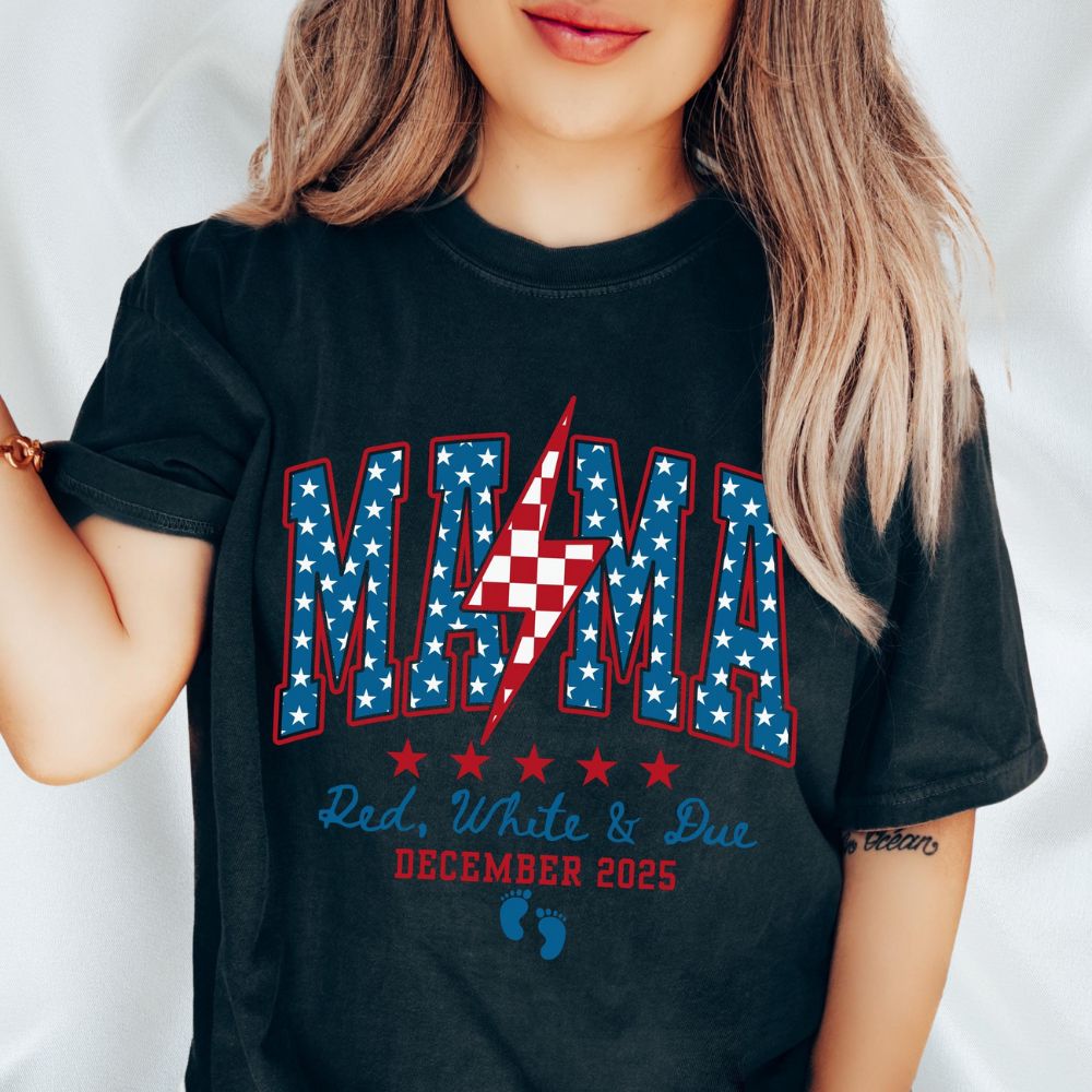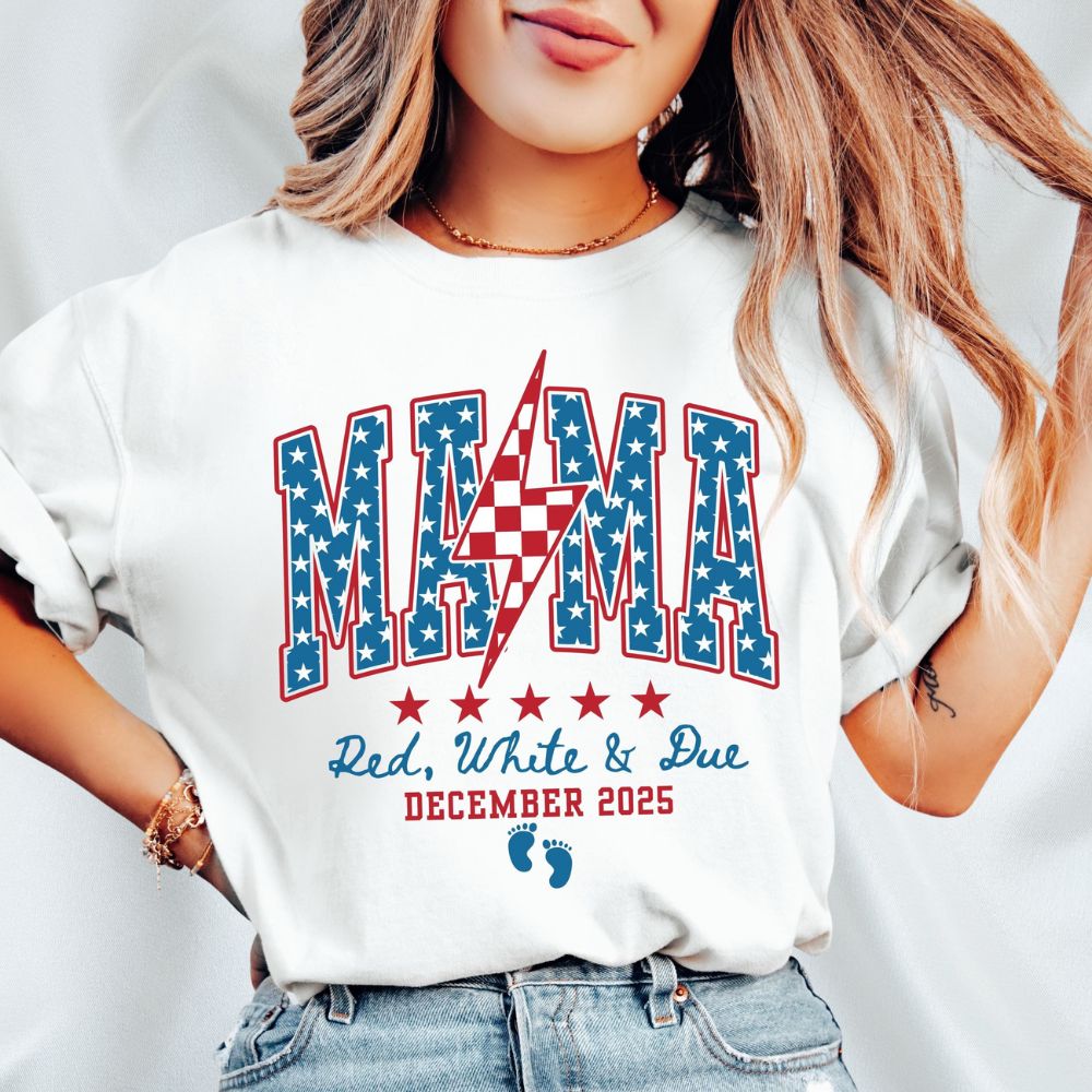 4th of July Pregnancy Announcement Shirt | American Mama Tee | Red, White & Due Maternity Reveal
