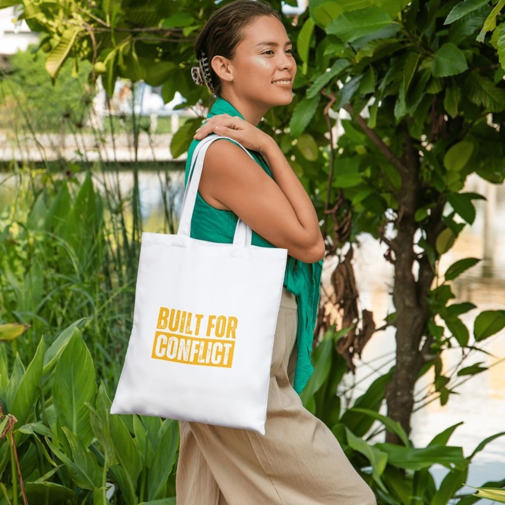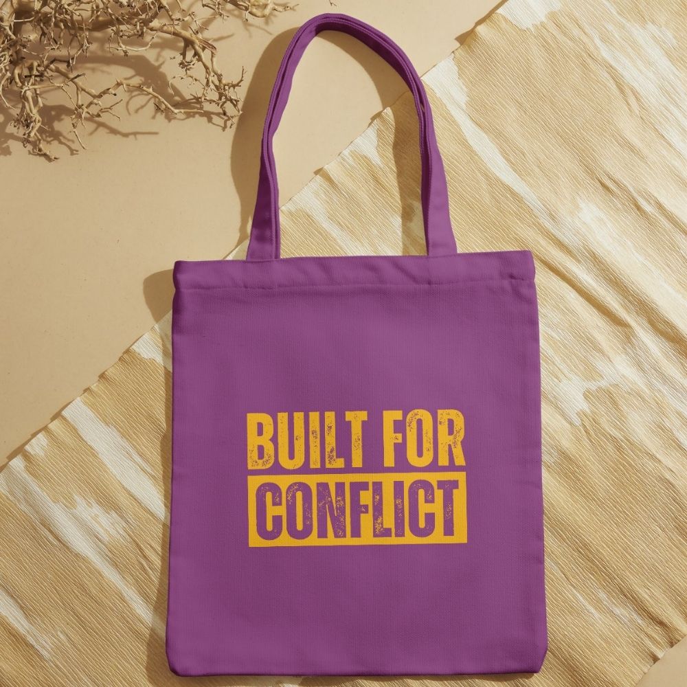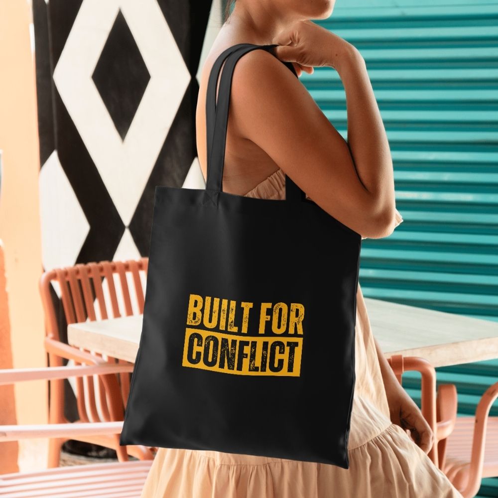 See the product images of the Built for Conflict Tote Bag | Gritty Streetwear Canvas Bag | Statement Tote below: