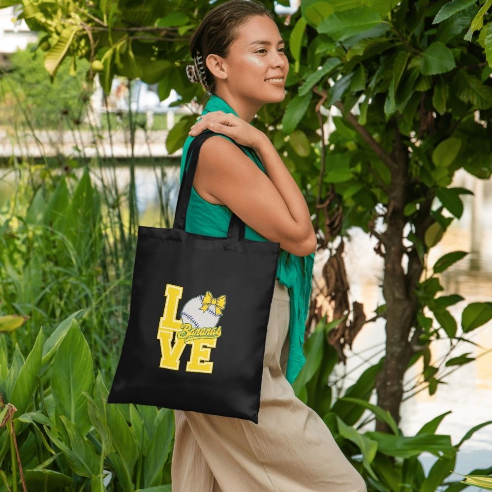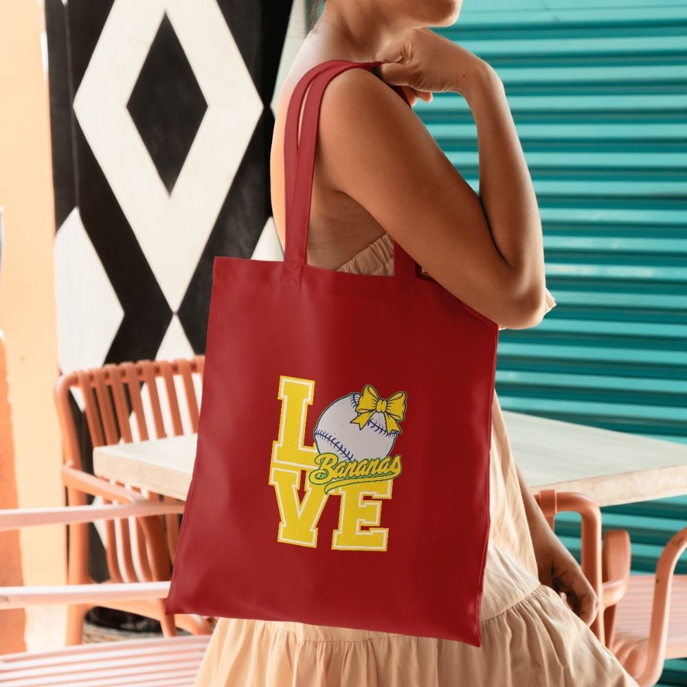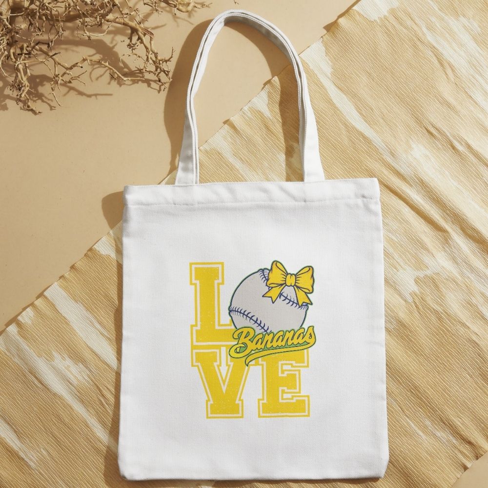 “LOVE BASEBALL BANANA” Tote Bag | Gritty Streetwear Canvas Bag | Statement Tote